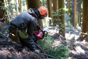 朝は集合して体調確認や作業内容の共有を行い、現場へ移動します。午前中は伐採や間伐、整備作業を行い、昼休憩を挟んで午後も同様の作業を続けます。作業終了後は道具の点検や片付け、翌日の準備をして解散します。日によって作業内容は変わりますが、規則正しいリズムで働けるため、生活リズムを整えやすい点も魅力です。